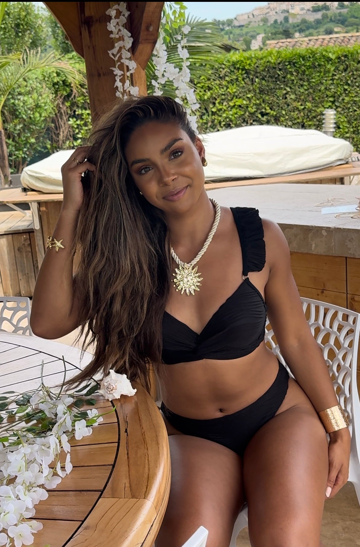 Son noir profond évoque la nuit étoilée des îles , tandis que sa coupe flatteuse sculpte la silhouette avec une élégance naturelle. Minimaliste, raffiné, indémodable. Hina est une ode à la féminité libre et assumée. Laissez votre aura briller!